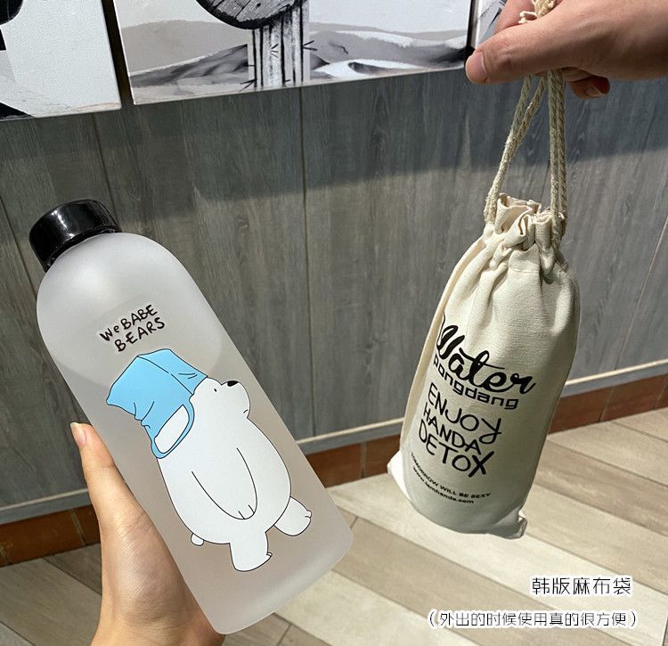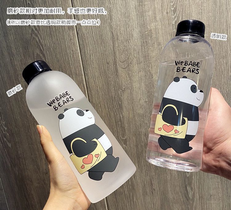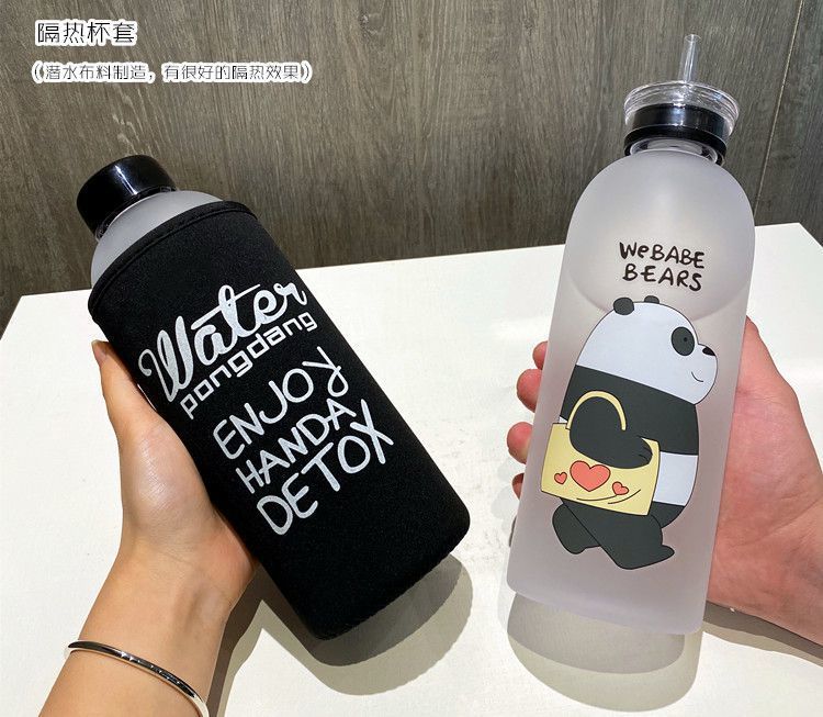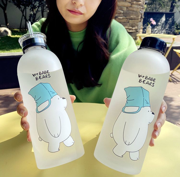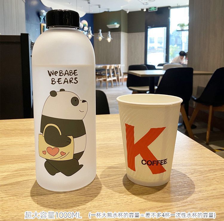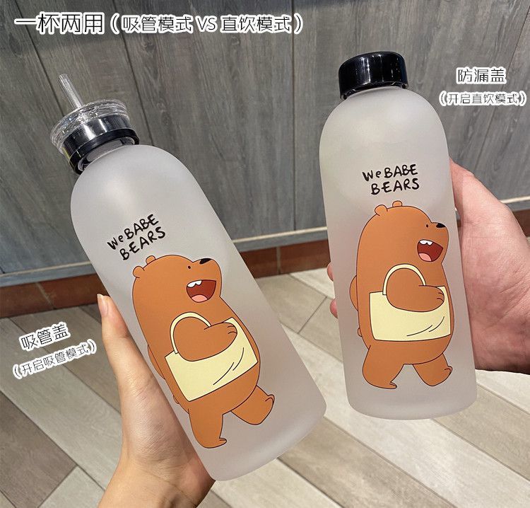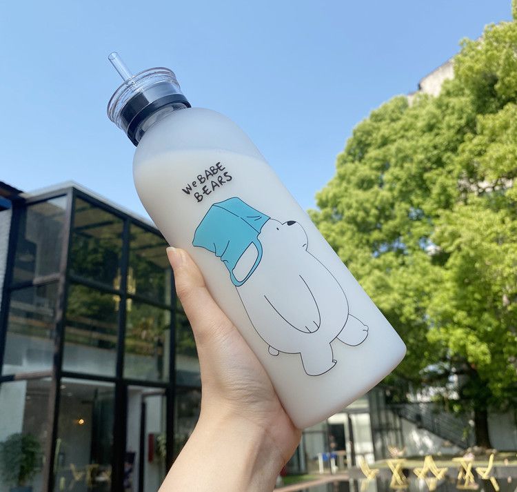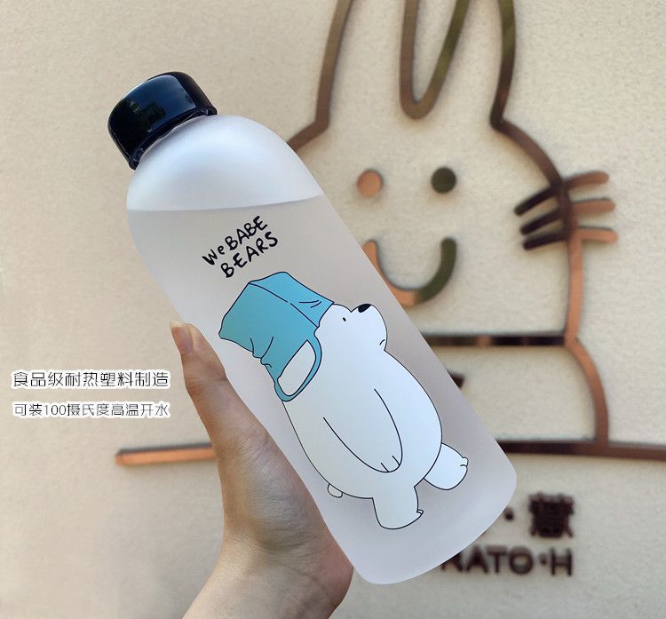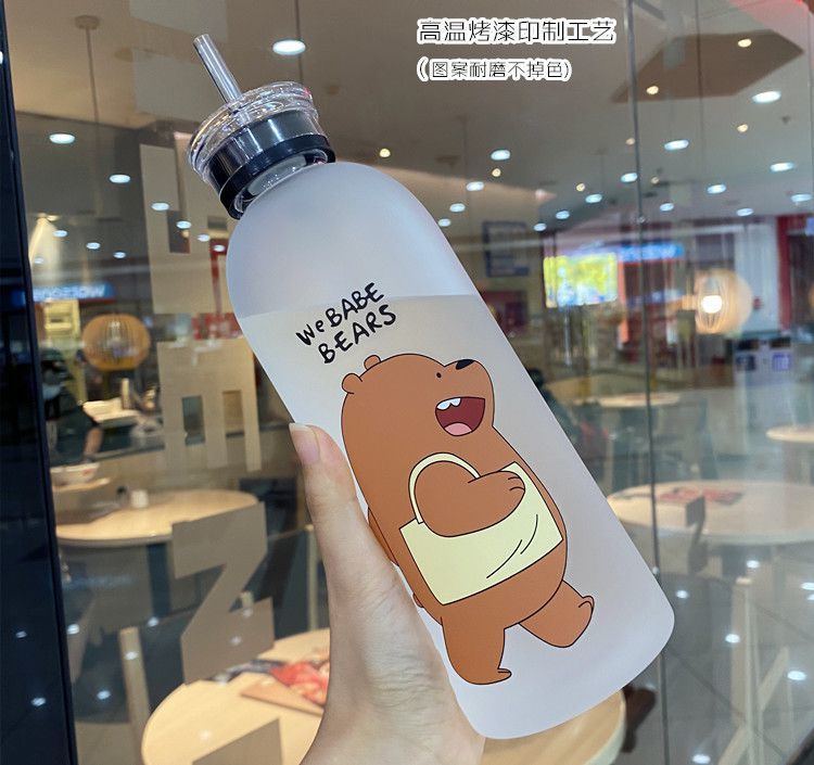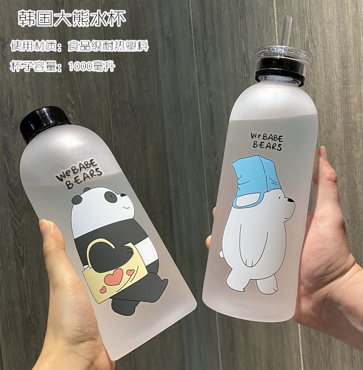Frosted Bear Cute Water Cup Large Capacity 1000Ml Plastic Water Cup Female Male Student Cup Ins Portable Heat-Resistant